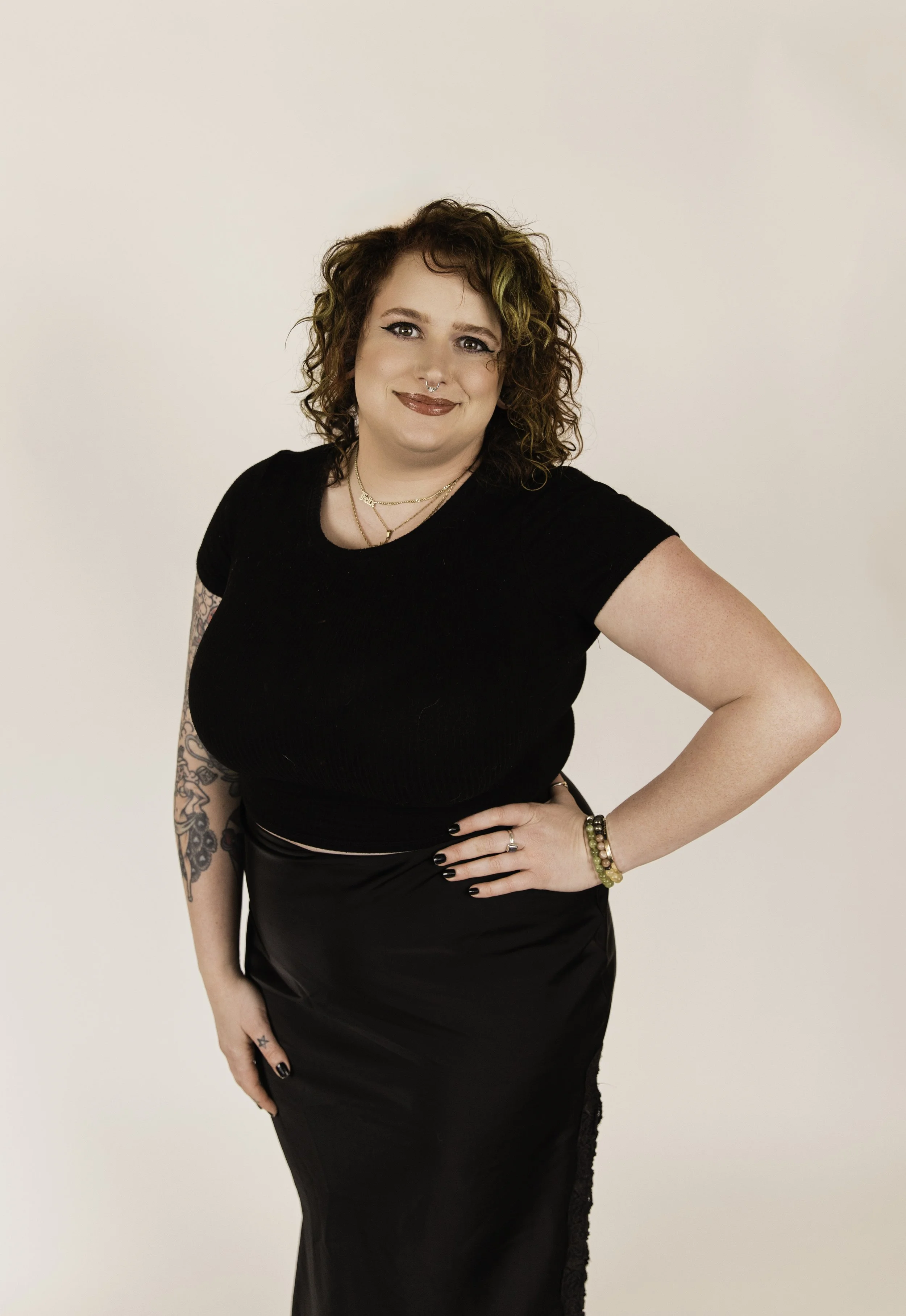 I love giving people looks that showcase their individuality. As a stylist, my main goal is to create a safe space for you to bring out your truest self. Whether you want the perfect blonde, a vivid rainbow, or to enhance your natural color with balayage, I can help you achieve your hair color goals. I also specialize in working with curly hair, extensions, and edgy cuts. For anyone wanting a cut that enhances natural texture, a cut with lots of attitude, or longer, fuller hair, I am excited to get you there!